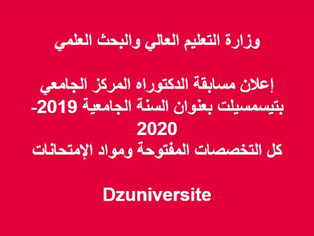 إعلان مسابقة الدكتوراه المركز الجامعي بتيسمسيلت بعنوان السنة الجامعية 2019-2020