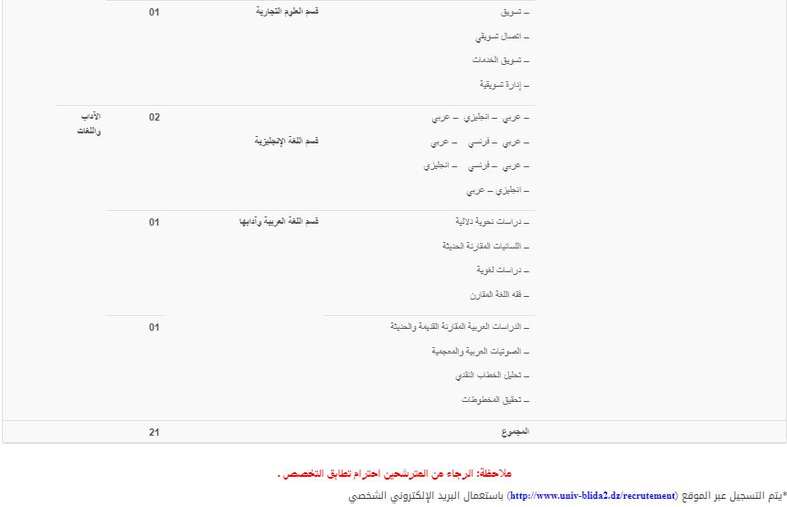 فتح مسابقة للإلتحاق برتبة أستاذ مساعد بجامعة البليدة 2